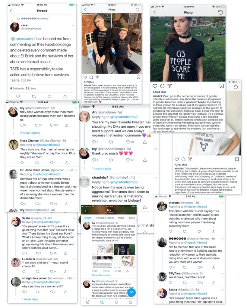 We need to write new radical feminist theory. We cannot advance this conversation in a productive way without taking its social media shitstorm seriously and seeing what is happening on social media as being a substantive event, one that needs to be considered theoretically, and one that reflects and affects the current state of things. We need to develop safer dialogues between transgender women and cisgender women, and we need to begin to create a space for a queer- and trans-positive radical feminist theory.